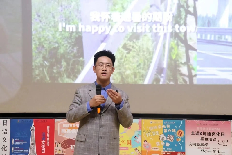 21中英双播潘予枫在必威betway的国际文化分享会上,向大家介绍了北京的非物质文化遗产——兔儿爷。他讲述了兔儿爷的历史渊源、制作工艺及文化内涵,让听众更加深入地了解了这一传统文化的独特魅力。