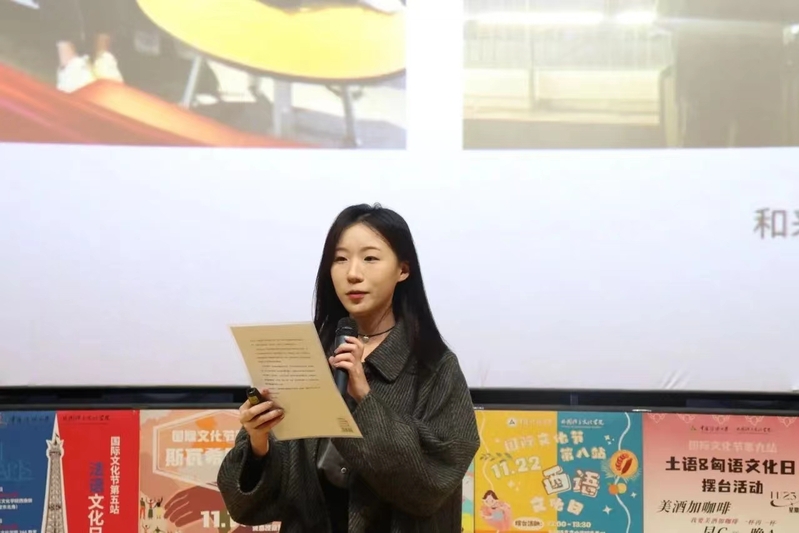 来自20西班牙语的林奕琪和21翻译的蓝金琳分享了从公益协会到外院志愿服务队的故事,组织义卖活动、陪护自闭症儿童、开设公益半月刊,她们用点点星光照亮黑夜,驱散寒冬的寒冷。