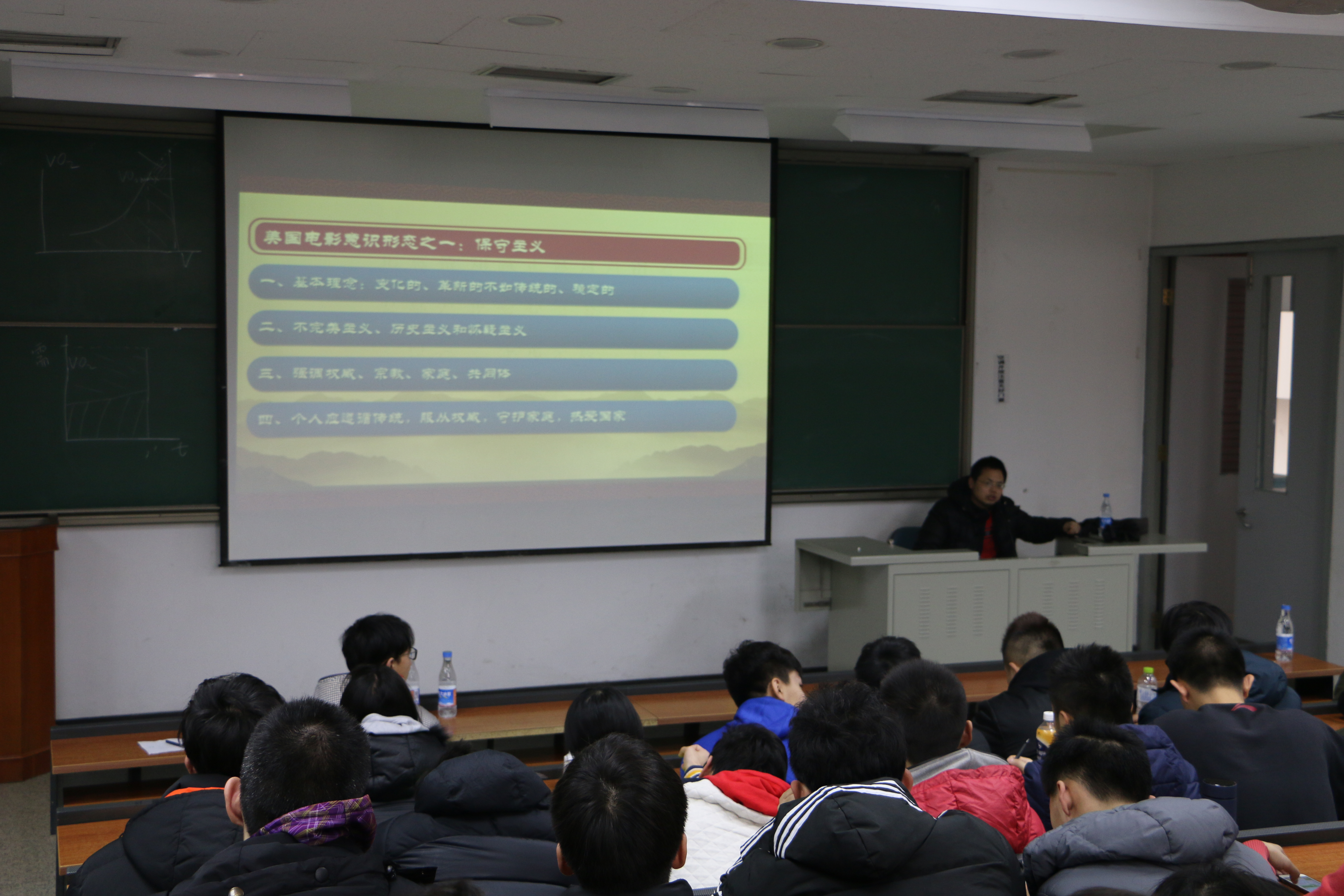 2015年12月9日上午10点整,必威betway特别邀请到来自清华大学的教授李健老师在教学楼315教室对必威betway同学们进行“红色文化系列教育”之美国电影如何控制中国员工头脑相关知识讲授。2015级的辅导员鲁骥和陈嘉宝老师也出席了此次活动。
