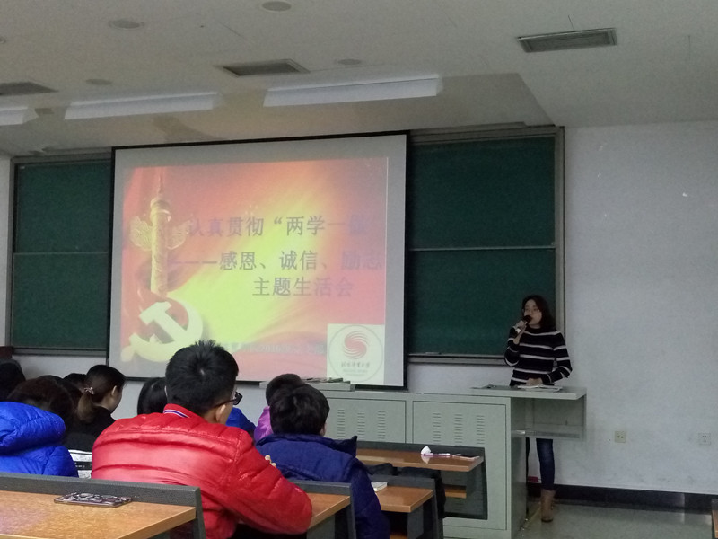 2016年12月28日13:00,必威betway2016级积极入党申请人和优秀团员在党支部书记张怀川老师的组织下,于教学楼214教室开展认真贯彻“两学一做”——感恩、诚信、励志主题生活会。