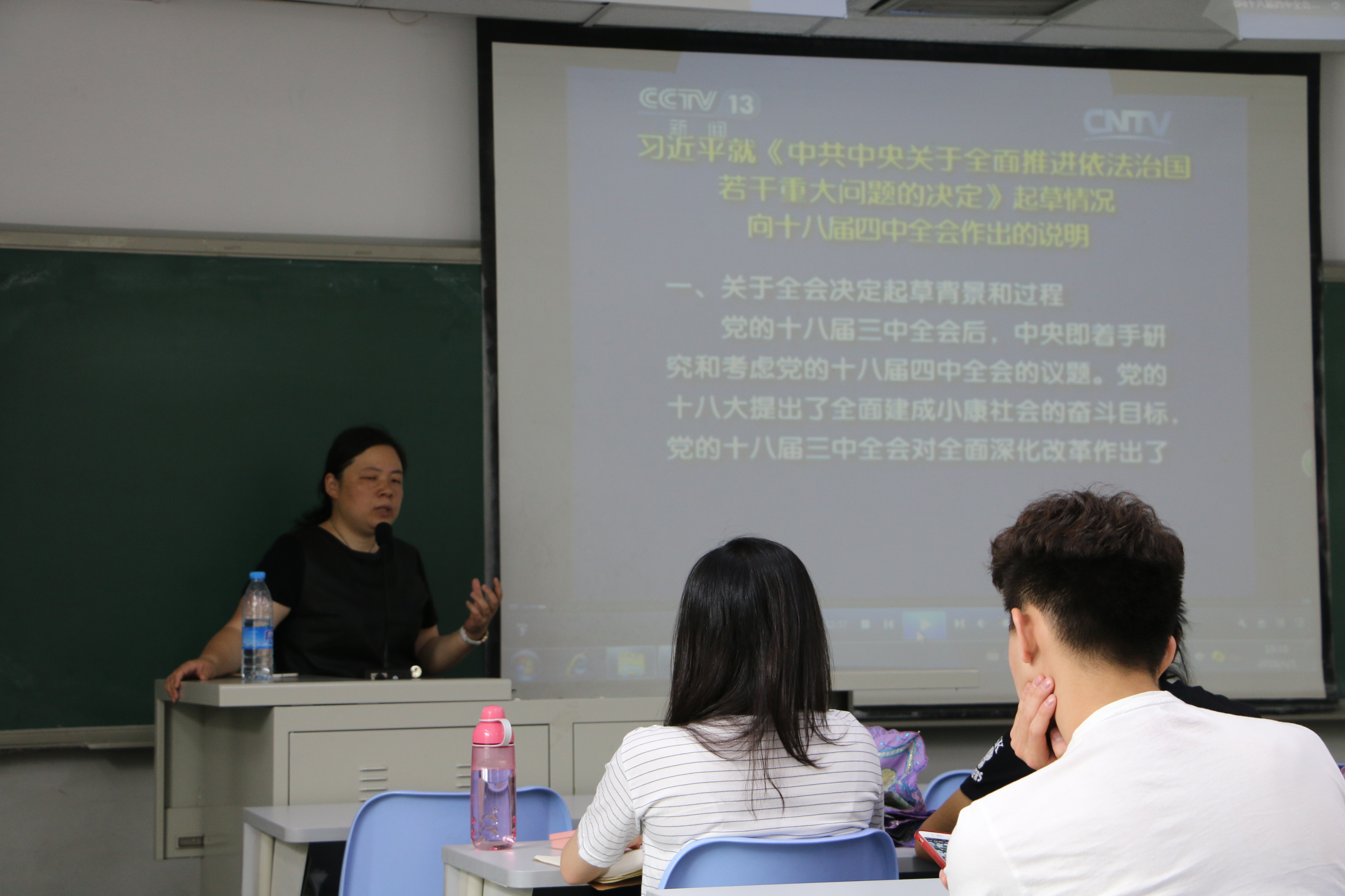 会议伊始兰薇老师以《两学一做形式政策课,全面推进依法治国与中国梦》为主题,认真讲解习近平总书记关于全面推进依法治国与中国梦的重要讲话精神,并让大家观看学习习近平总书记对中国梦的诠释的视频,以具体法律案例教育员工以法律准绳要求自己。