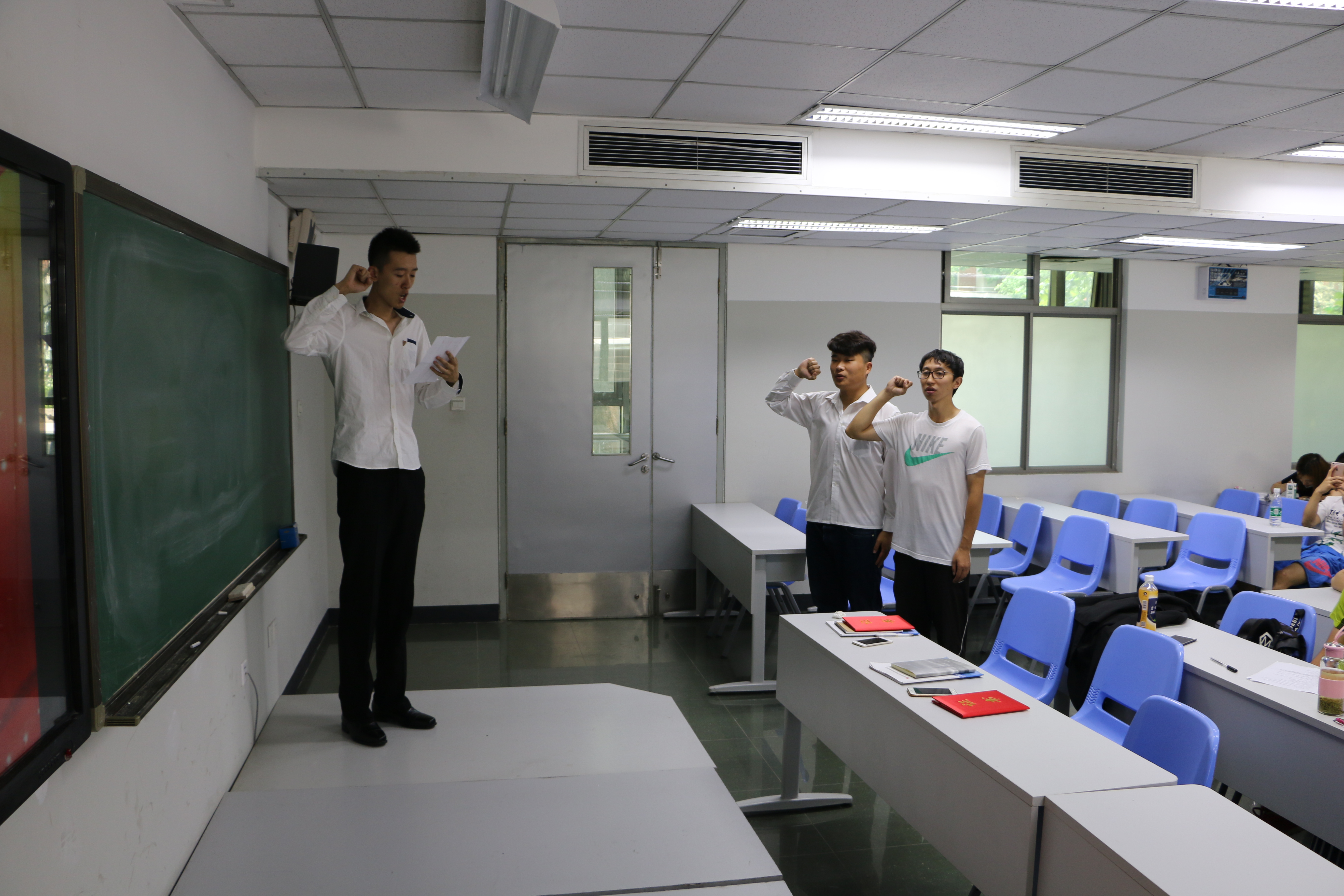 尾声,由鲁骥、杨博翰、高浩冉三位党员重温入党誓词,在面对庄严的党旗,他们又一次回忆起最初入党时的心情,郎朗有力的誓词更加坚定了他们为实现理想信念而奋斗终身的觉悟。奋发进取、用心工作,立足自身岗位,以更加高昂的精神、更加优异的业绩为支部做出新的贡献,践行对党的庄严承诺。
