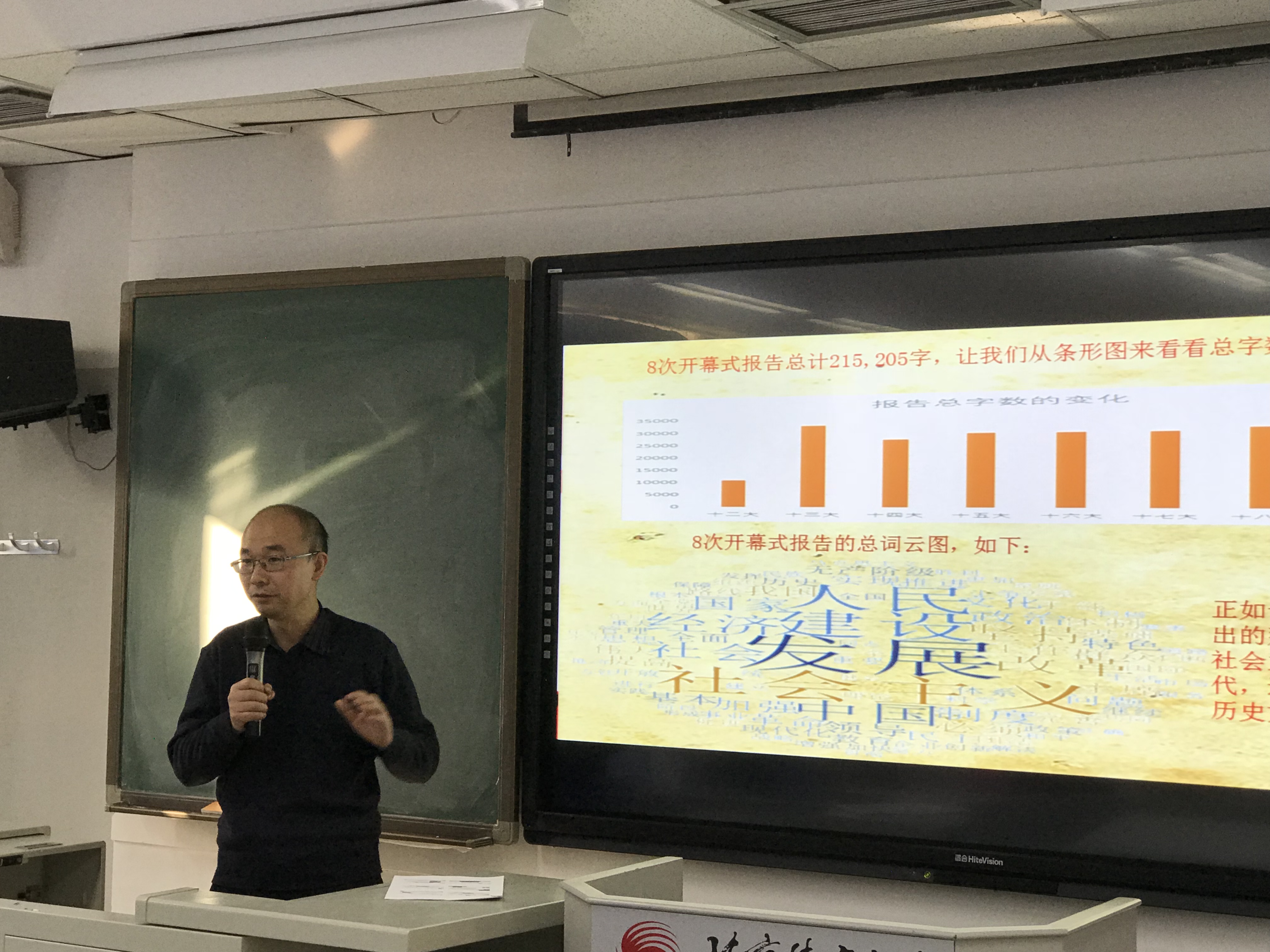 周学政老师的报告分为四个部分。他首先用简明生动的语言对十九大精神进行了解读,对近几年国家发展理念、发展方式的转变历程进行了梳理,形象地说明了我国发展进入新时代;随后结合国家体育事业的发展阐述了“我国体育发展进入新时代”,着重讲解了“健康中国”与“体育三大任务”,阐明了“体育强中国强”的丰富内涵,以及中国体育在全面建成小康社会、基本实现社会主义现代化、建成社会主义现代化强国中承担的光荣使命;接着他又进一步阐释了“体育强国与中国特色体育发展道路”,既要体现体育行业内部的“强”,又要体现体育在国民经济和社会发展中的地位提升,更要体现体育对国家发展战略贡献的提升;最后周老师结合学校改革发展建设,围绕“服务'双一流’,贡献体育强国建设”,从我们要建什么样的“双一流”体育大学、要培养什么样的人才、怎样培养人才以及怎样做等方面与老师们交换了意见。