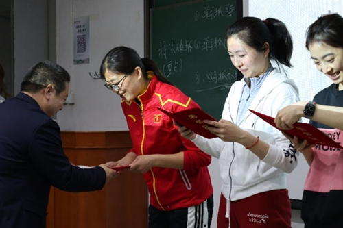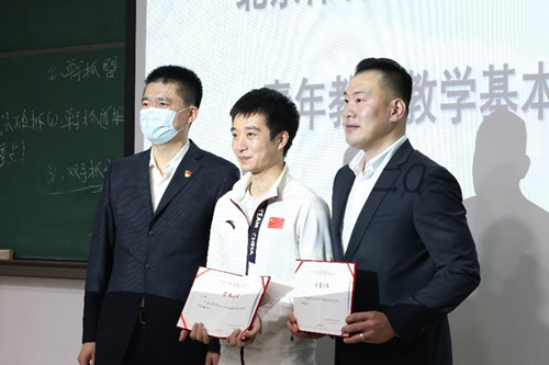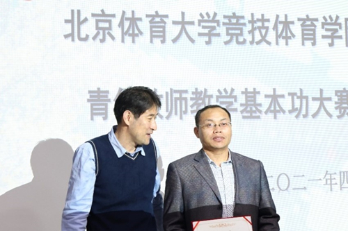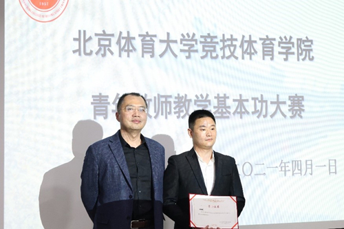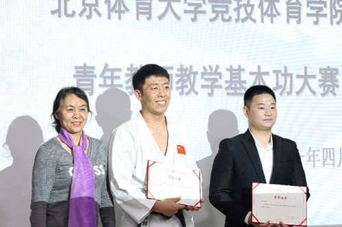 伴随着掌声,激动人心的颁奖时刻开始了。最终,通过现场评委们的打分,孙友斌老师、张剑波老师荣获本次教师基本功大赛术科“一等奖”;李健老师荣获学科“一等奖”;郭露露、王亚莹、王适娴老师荣获“二等奖”;张昊、郭南老师荣获“三等奖”,其中,孙友斌老师凭借着规范而又细致的教案荣获了本次比赛的“最佳教案奖”;张剑波老师凭借着对空手道实用而又帅气的展示一举夺下本次比赛的“最佳演示奖”。