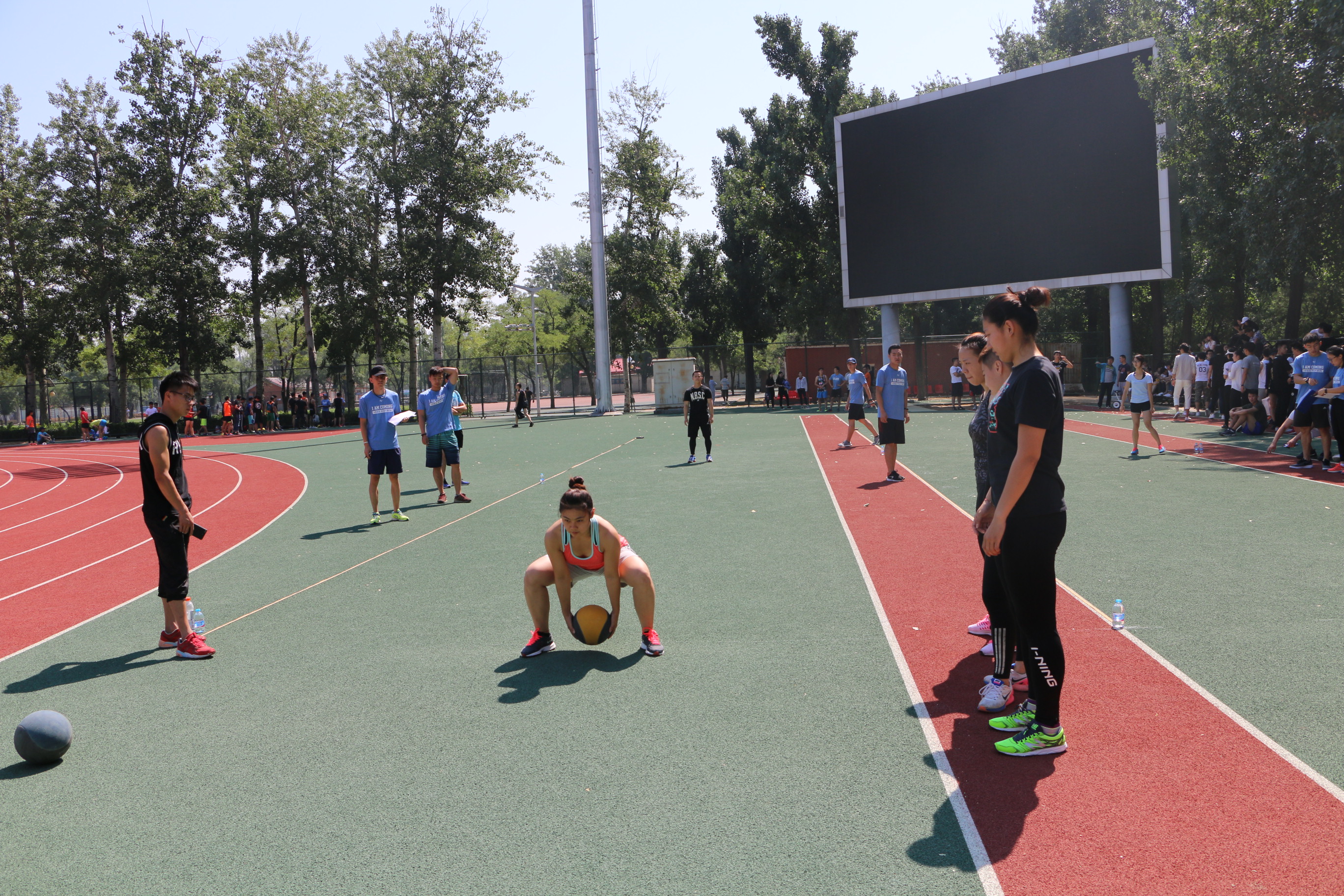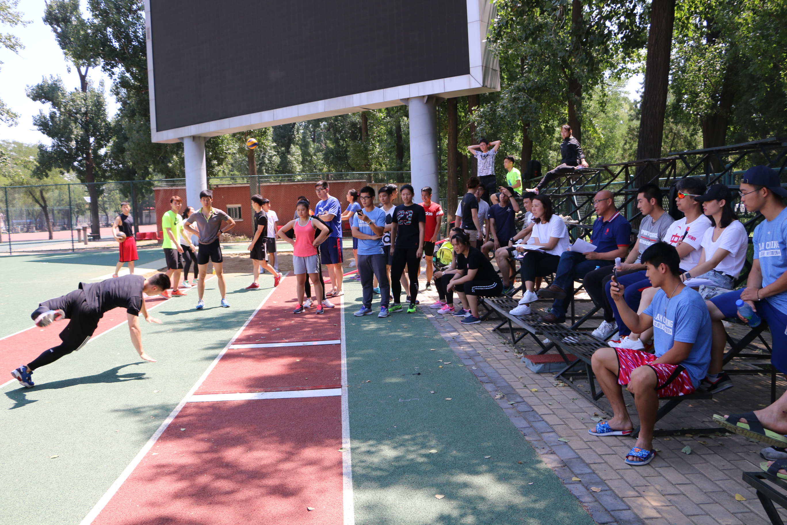 今年体能班甄选,共有120名来自运动训练、体育教育、社会体育、民族传统体育、运动人体科学、运动康复、管理学院已完成前两年培养方案规定课程的员工报名。考试现场烈日当空,考生们分别进行3公斤前、后抛实心球,5级跨步跳,60米跑,一分钟静力引体向上,技能展示和1500米跑共6个考试项目。考生们饱满的热情、认真的态度、朝气蓬勃的精神面貌给评委老师和在场观众留下了深刻的印象。