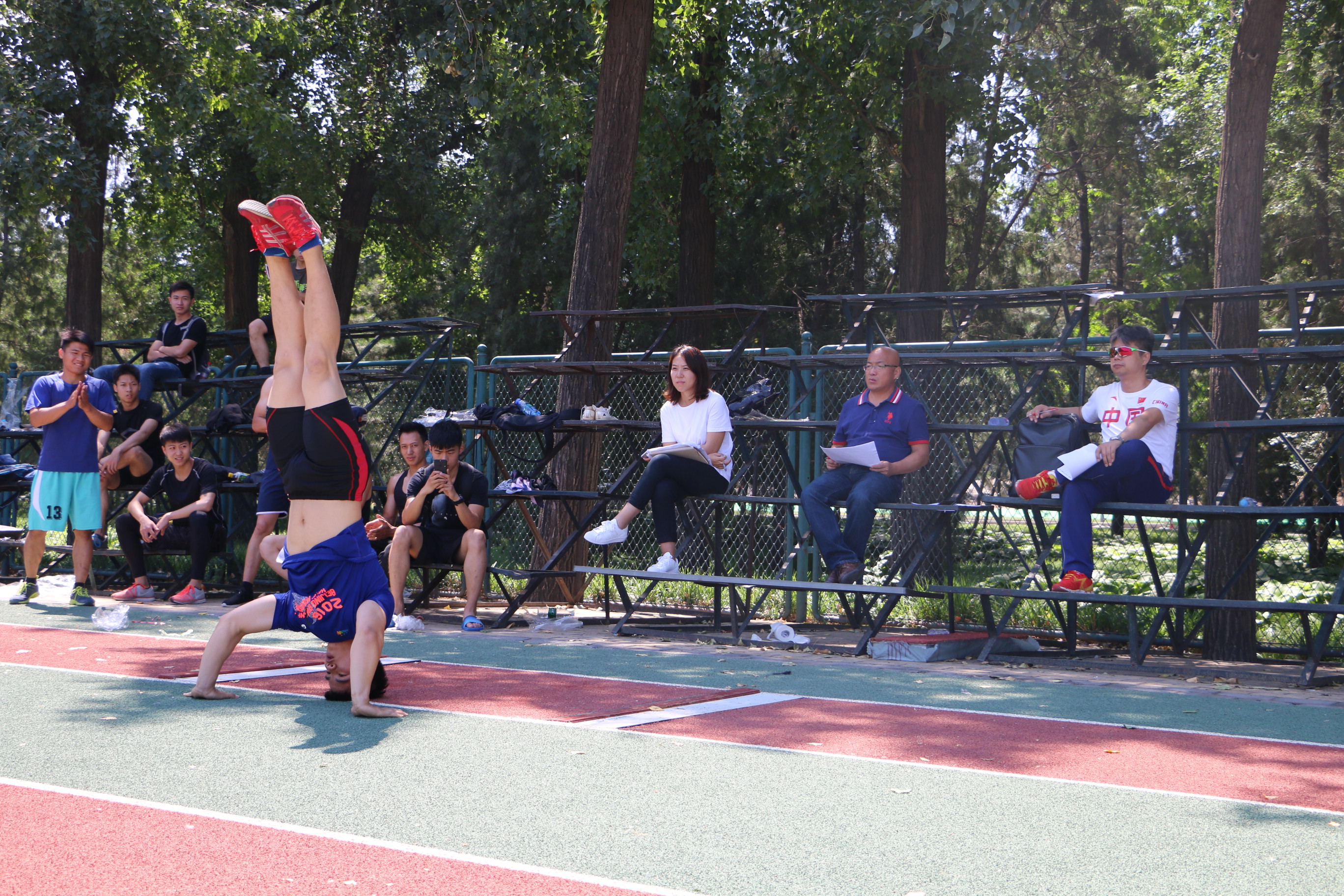 2017年6月14日上午8时,2015级体能训练方向班在英东田径场上正式进行体能测试的招生考试。此次到场的评委有必威betway副经理左琼老师、体能教研室周爱国、李春雷和张鹏老师,年级辅导员张玉莞尔老师。