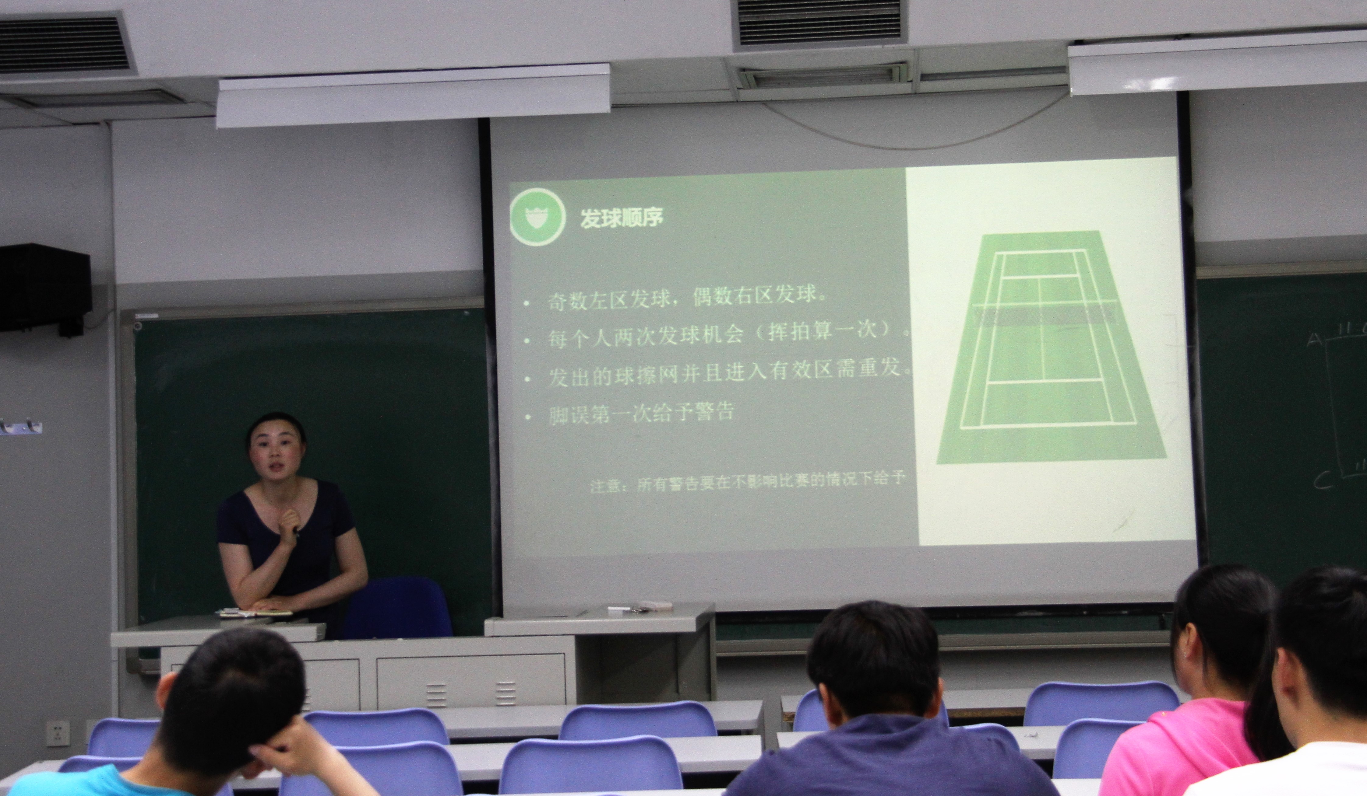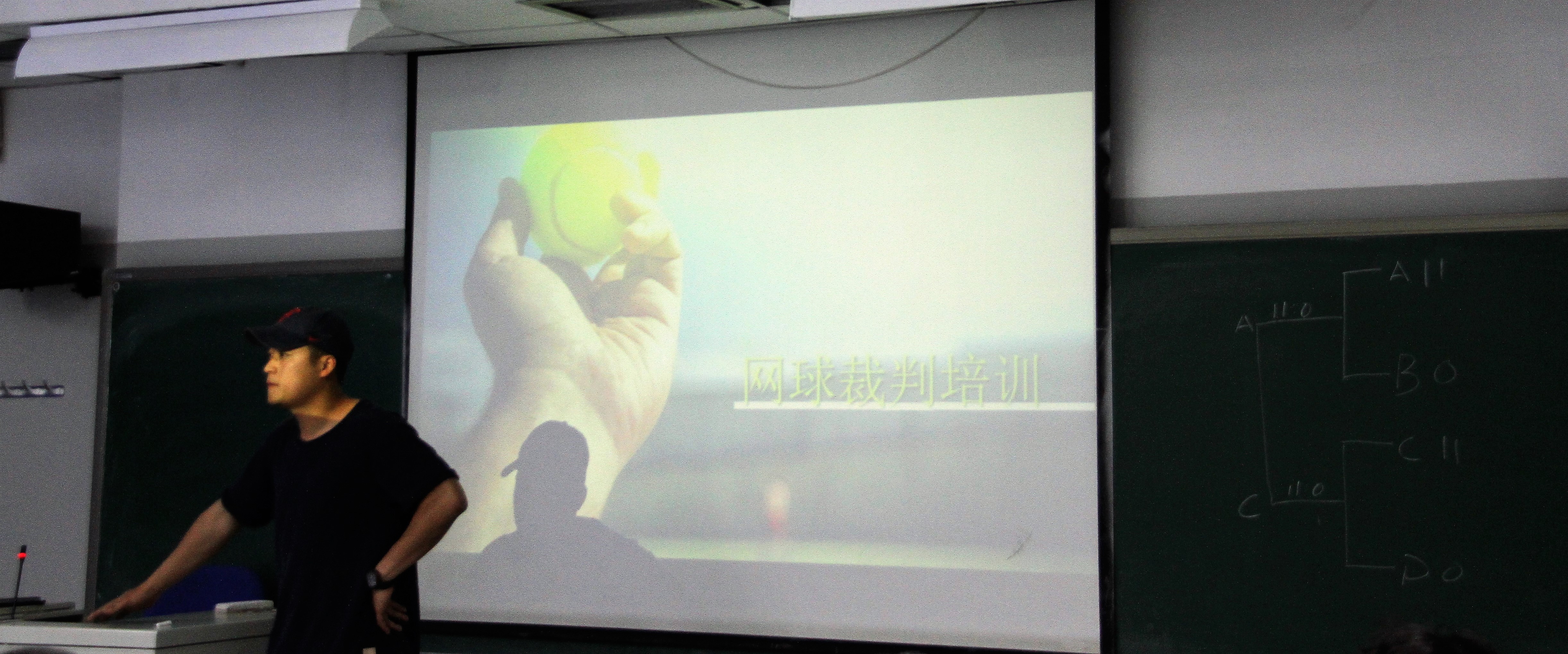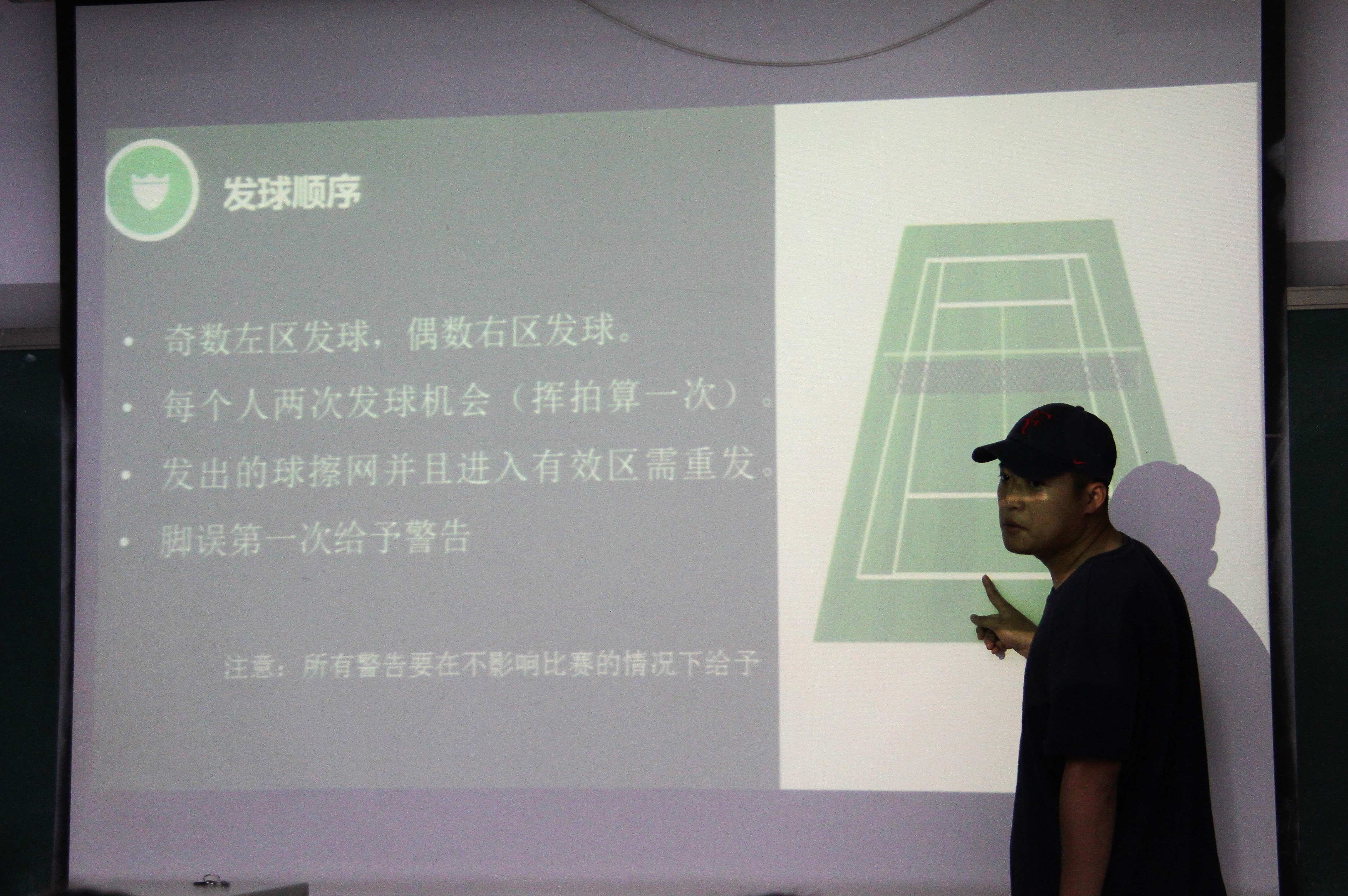 总结会开始前,北体大网球专项的研究生程孝辉为全体“高参小”老师进行了一次简短精炼的网球裁判培训。这次培训的目的是为在5月21日即将到来的网球比赛裁判事宜积极做准备。