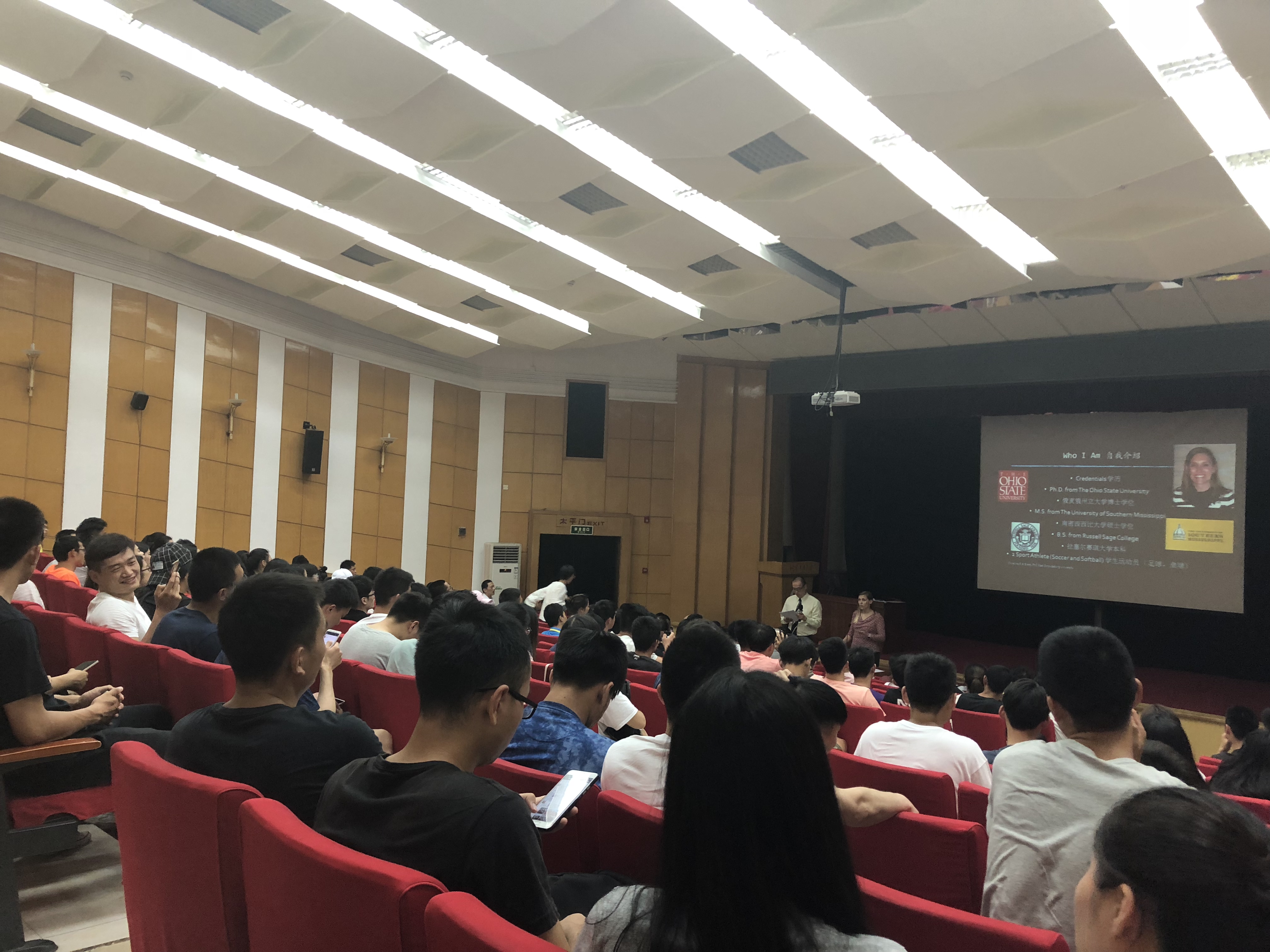 第一场《美国中学体育教师培训体系及认证》的主讲人为克里斯蒂布瑞德教授,布瑞德教授是美国东斯特劳斯堡大学体育教育系主任,她有着多年美国大学教学经验。在讲座中她从专业的角度,详细地向同学们介绍了美国中学体育教师培训的考核标准和具体方式。在讲座的最后她特别强调,美国目前的体育教育发展的最明显趋势是和健康教育相融合。
