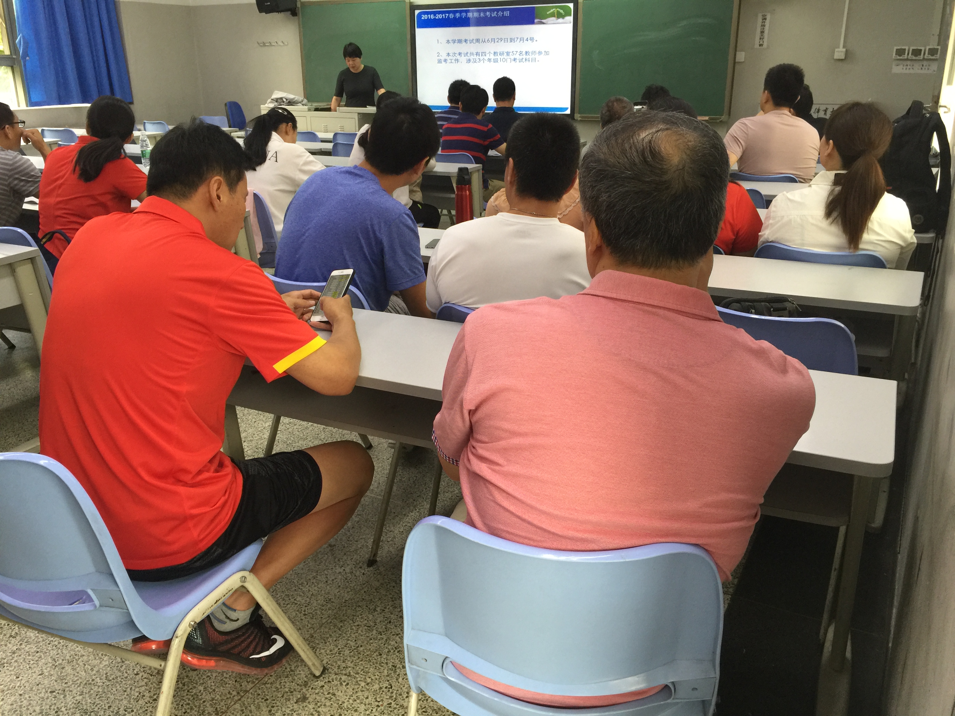 按照学校教务处关于安排期末考试相关工作的通知,为保障本学期期末考试顺利进行,竞技体育公司于2017年6月28日上午9点在教学楼101教室组织了2016-2017学年春季学期监考老师期末考试培训会,教研室领导及全体监考老师参加了会议。培训会由左琼副经理主持并主讲,培训内容主要由两部分组成。