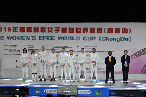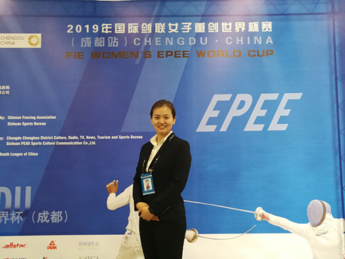 2019年国际剑联女子重剑世界杯赛于3月23-25日在四川省成都市成功举办,来自26个国家和地区的168名选手参与了角逐。公司重竞技教研室许丽娜老师代表中国籍裁判参与了该赛事的执裁工作,其在赛中执裁水平得到了国际剑联技术代表的一致肯定,并以第一主裁的身份执裁了该赛事的团体决赛场次。这也是近年来中国籍女性裁判员首次执裁世界剑坛冠亚军决赛场次!这充分向世界展示了北体教师国际化的专业执裁水准!