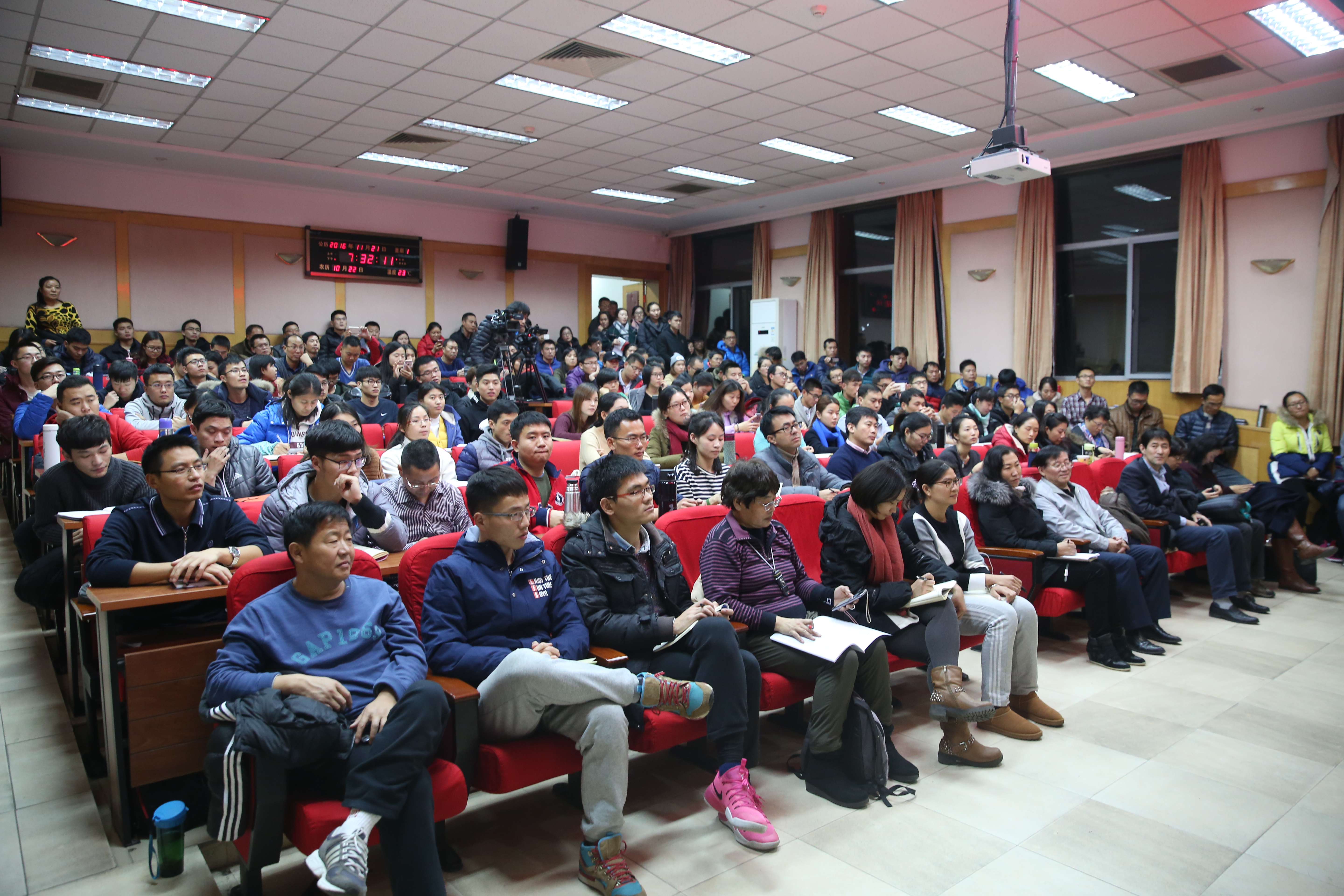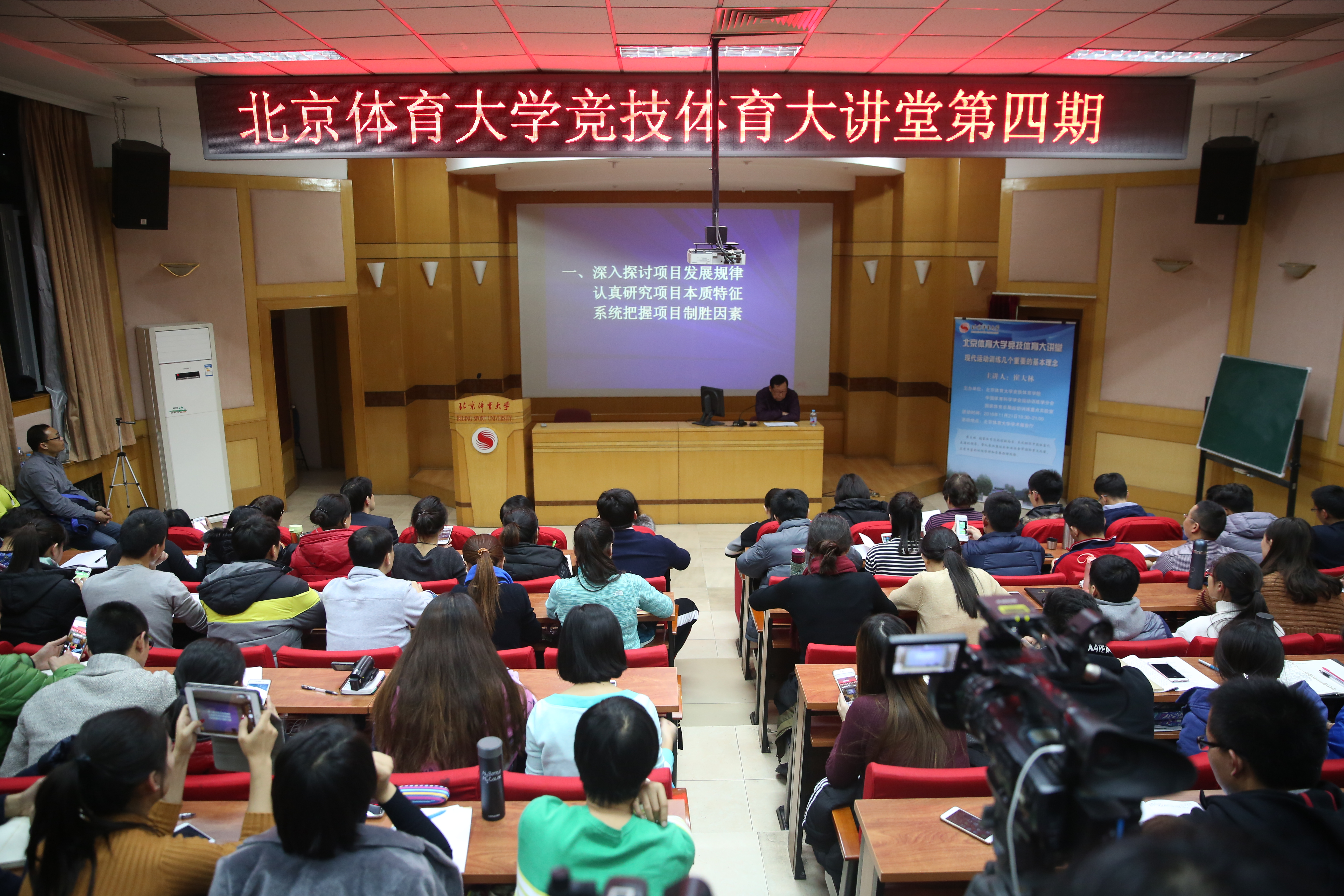 两个小时的讲座中,崔局长以其多年训练管理和竞赛指挥的亲身经历,全面、深刻地讲述了现代运动训练的基本特征、重要理念,观点明确,内容丰富,案例鲜活,语言幽默。师生认真聆听,现场气氛热烈,仍有部分同学站着听完了整场讲座。讲座后,很多同学久久不散去,围着崔局长继续提问,并争相合影留念。同学们纷纷表示,这种理论和实践结合紧密的讲座为论文选题及今后研究方向的确定提供了新的视角和思路。
