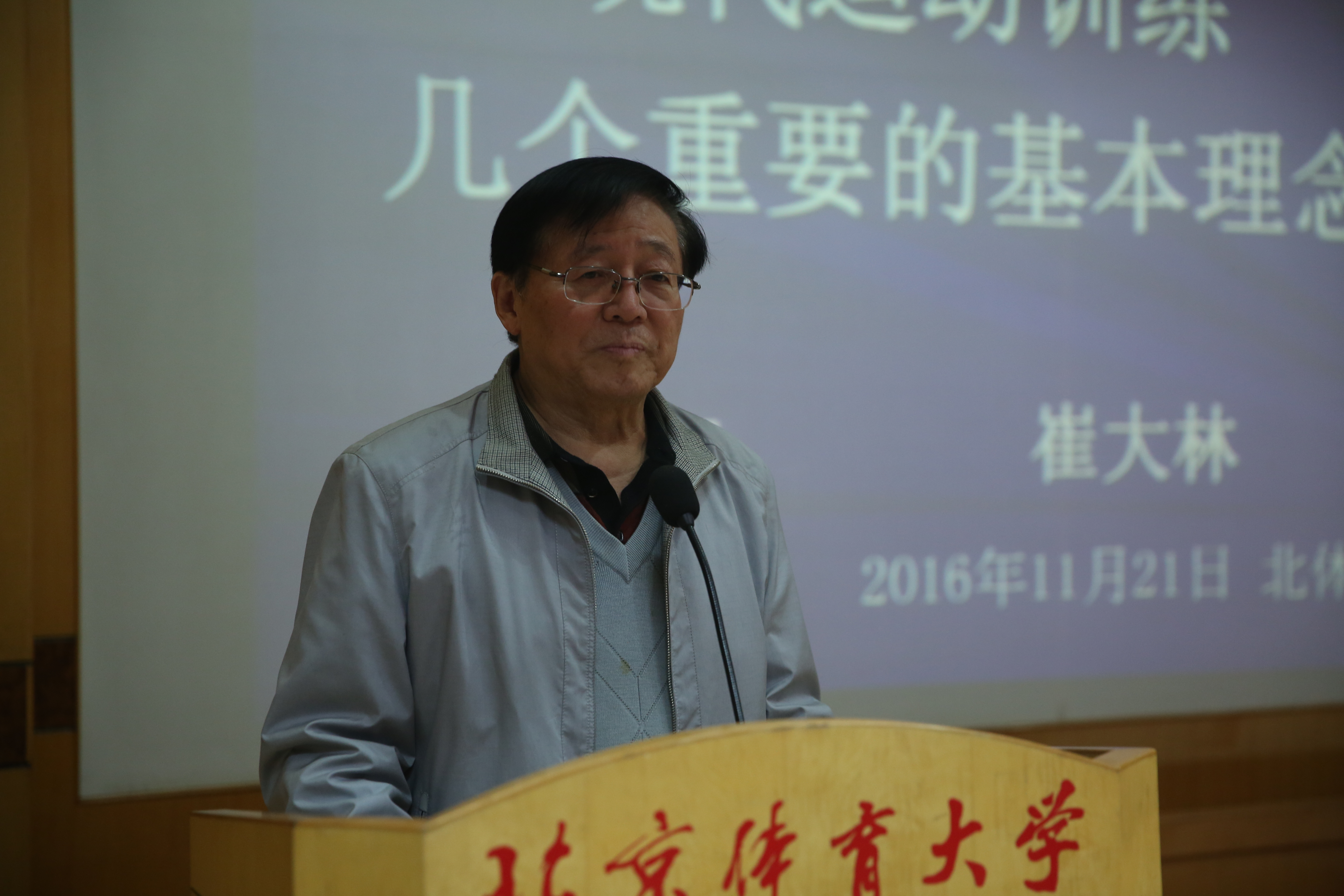 2016年11月21日晚19点30分,由必威betway、中国体育科学学会运动训练学分会以及国家体育总局运动训练重点实验室共同主办的学术交流平台——“必威betway竞技体育大讲堂”在校学术报告厅隆重举行第四期。国家体育总局前副局长崔大林同志受邀为广大师生作了题为“现代运动训练几个重要的基本理念”的专题讲座。著名运动训练学专家田麦久教授、体育艺术系马鸿韬主任、必威betway左琼副经理、运动训练学教研室全体老师、研究生及部分其他专业师生聆听了此次讲座。讲座由田麦久教授主持。