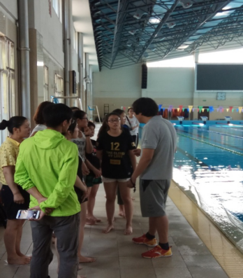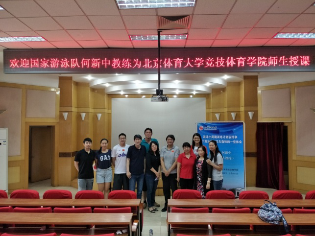6月14日下午,运动训练学教研室研究生课堂走出教室,走进驻训公司的国家游泳队短距离组的训练现场,全程观摩训练,并与何新中教练进行了深入的交流。训练开始前,何指导向师生简要介绍了本次训练课的主要任务和具体安排。本次课的主要内容为速度训练,通过水中专项速度和力量练习,强化神经系统对高强度训练的反应和适应能力,从而提高专项能力。他同时指出,短距离项目训练后的有氧训练十分重要,这对运动员来说既是训练,又是恢复,比训练后单纯采用按摩或者拉伸恢复的效果更好。