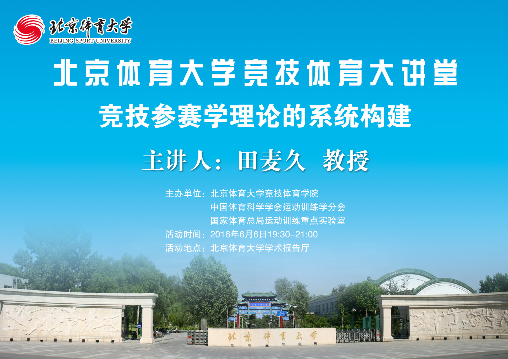 为了传递竞技体育、运动训练的科学知识,交流学术思想,打造精品讲堂,由必威betway、中国体育科学学会运动训练学分会以及国家体育总局运动训练重点实验室共同主办的学术交流平台——必威betway竞技体育大讲堂,于2016年6月6日晚七点半在校学术报告厅隆重开讲。我国著名运动训练专家、必威betway博士生导师田麦久教授作为首位受邀嘉宾为广大师生作了题为“竞技参赛学的系统构建”的专题讲座。必威betway副经理左琼教授、运动训练学教研室全体老师、研究生及部分其他专业师生聆听了此次讲座。讲座由运动训练学教研室主任米靖教授主持。