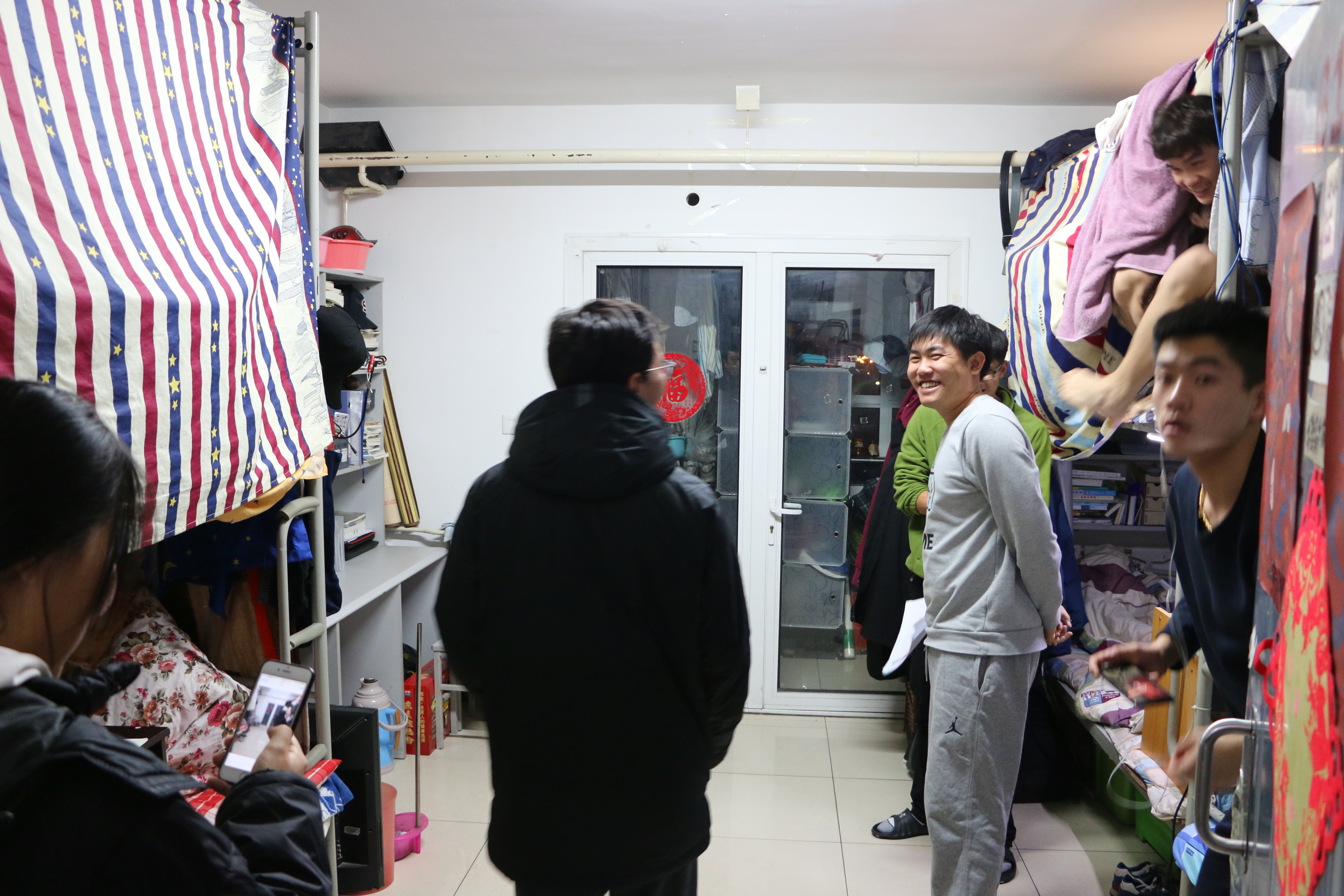 在检查时,辅导员鲁骥强调了宿舍卫生问题,强调了日常晚查寝应加大监管力度,两查委员会的年级干部在开展工作时,应做到实事求是,年级将会严格按照校规校纪开展工作。辅导员鲁骥在检查时还着重强调了宿舍纪律问题:每位同学的生活习惯都不同,大家应该相互尊重。在宿舍不要大声喧哗,不要打闹,尤其是在午休时和晚熄灯后,学会换位思考,多考虑别人的感受,为他人创造一个良好的休息环境。若产生矛盾,双方应注意加强沟通,寻找问题的解决办法。查房同时,辅导员鲁骥,张玉莞尔也询问了同学们近期的学习情况,告诫同学们天气转冷,要多加衣服,预防感冒。
