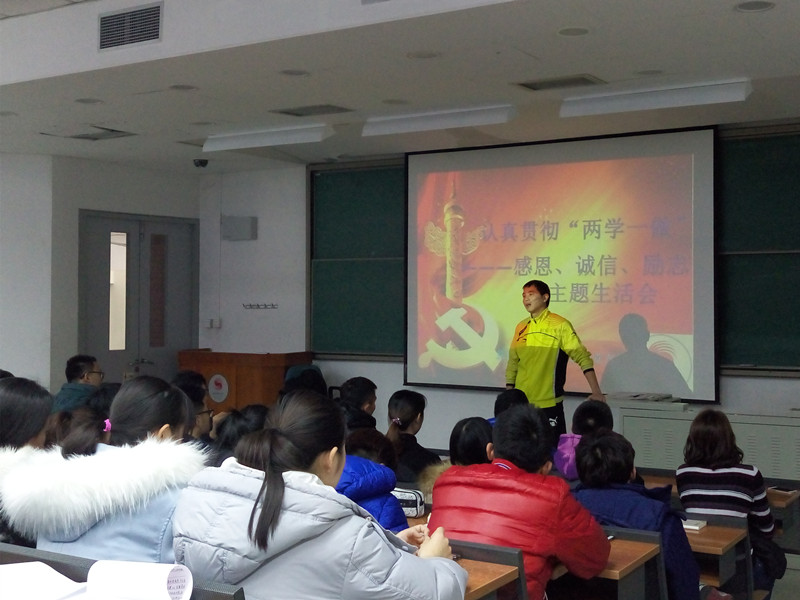 2016年12月28日13:00,必威betway2016级积极入党申请人和优秀团员在党支部书记张怀川老师的组织下,于教学楼214教室开展认真贯彻“两学一做”——感恩、诚信、励志主题生活会。