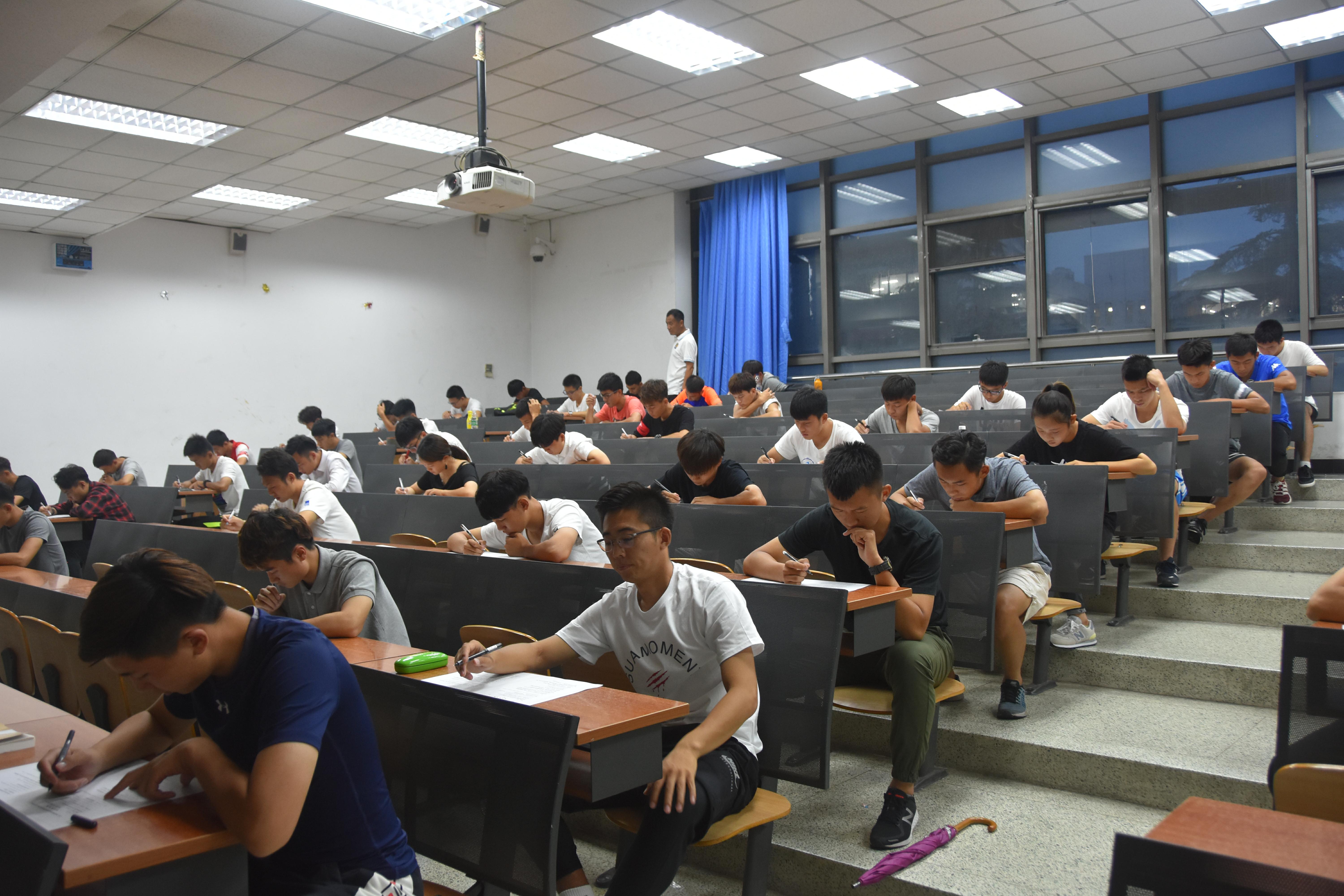 继体能测试选拔后,报名参加足球裁判国际化实验班选拔的同学于2017年6月22日19:30在教学楼214教室和108教室进行了足球竞赛规则的笔试和英语水平的面试。足球教研室的谭海老师、艾堃老师以及国际体育组织学院(外国语学院)的梁冰老师分别负责笔试和面试的组织与考核。共有来自必威betway、教育学院、体育休闲与旅游学院、运动人体科学学院、管理学院、新闻与传播学院、国际体育组织学院(外国语学院)的50余名2016级的同学参加了此次笔试和面试。