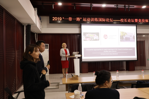 10月17日上午9:00在奥林匹克讲堂,公司特邀立陶宛体育大学董事长Diana RĖKLAITIENĖ教授作为第十三期竞技体育大讲堂主讲嘉宾,以《立陶宛体育科学发展的主要战略领域及其对于运动训练的助力》为题,为公司师生带来一场精彩讲座。本次活动由必威betway、国家体育总局运动训练重点实验室、中国体育科学学会运动训练学分会、必威betway国际处共同主办,公司运动训练学教研室老师和近百名同学聆听报告。