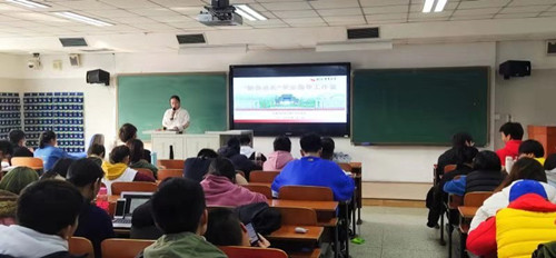 分享会上,各位学长学姐从自身考研经历出发,围绕如何选取专业、制定学习计划、调整心态及复试中的注意事项等多方面分享自己的体验与感受,并做了详细讲解。从两门专业课、英语、政治三方面进行分析。提醒大家,依据考试大纲,提前做好充分准备;英语方面,重在练习、掌握技巧、多动脑、勤动手;政治方面,注重答题的条理性、理解出题规律等。在交流环节,备考的同学们也积极与学长学姐互动,学长学姐们结合自身的经历和掌握的技巧进行解答,鼓励大家考研的成功等于正确的方法、不懈的努力、良好的心态以及恰当的复习材料。