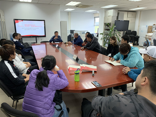 2019年10月23日上午9:20,重竞技教研室全体教师在网球综合馆三楼办公室召开“不忘初心、牢记使命”主题教育系列学习研讨会议,本次会议主题为学习“习近平总书记在庆祝中华人民共和国成立70周年大会上的重要讲话”,教研室全体教师相互交流学习体会,统一思想、凝聚共识。