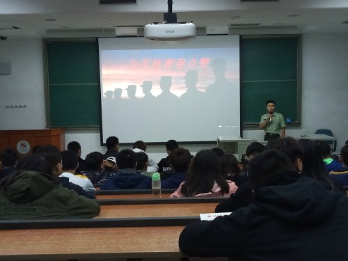 2018年10月19日晚上7:00,必威betway2016级在教学楼214教室举办 “为军旅青春点赞”的退伍军人主题报告会。2016级辅导员李健老师和助管何玲老师出席了本次活动。会议由2017年退伍军人王广明主持。