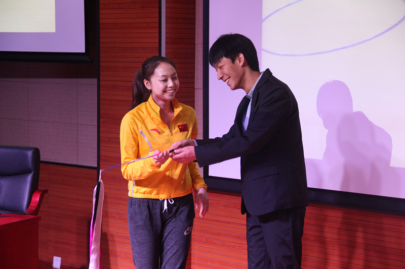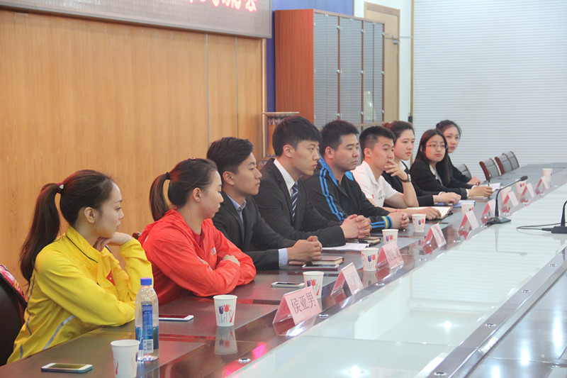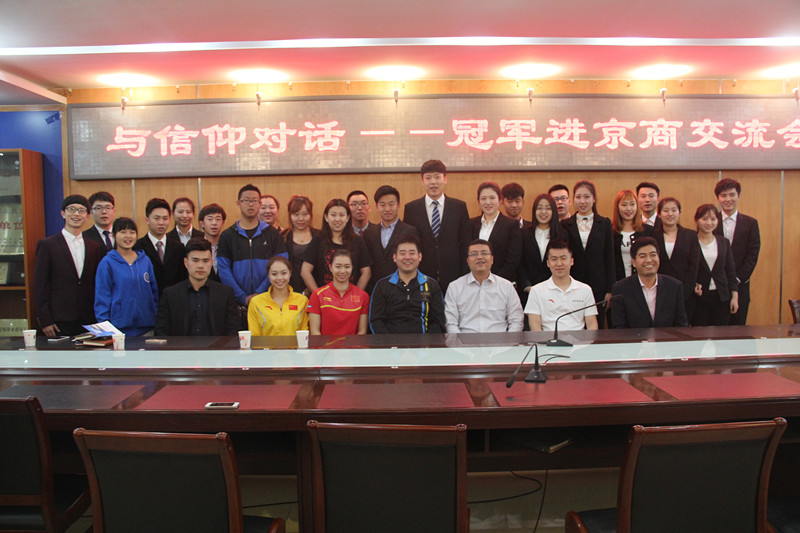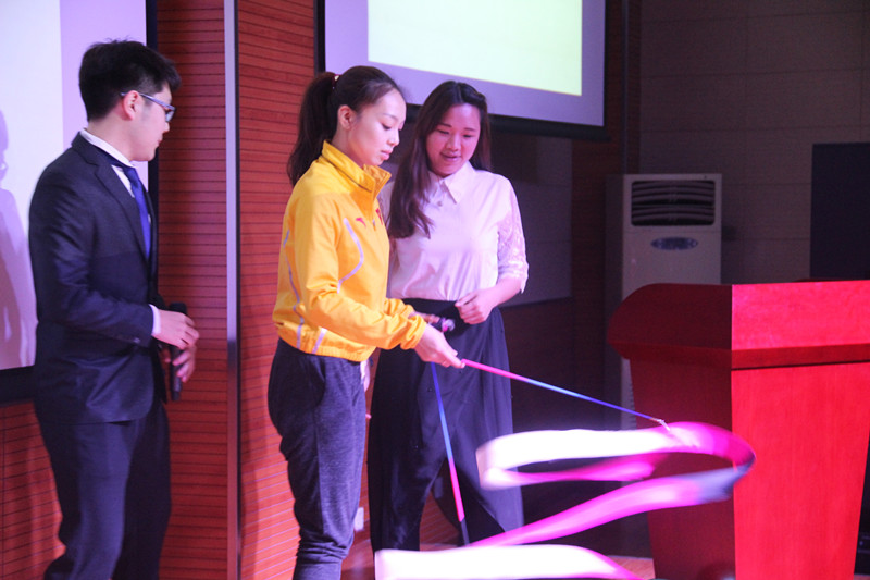 本次交流活动共分为两部分。第一部分是参加由京商学院组织的“与信仰对话,冠军进京商,名人成长经历交流会”活动,由世界艺术体操冠军侯亚男与奥运会体操冠军杨伊琳以“我的运动人生”为主题为京商学院员工做出演讲,以自身经历向到场师生展示体育人努力、拼搏的精神,激励在场同学为梦想而努力。活动现场,两位冠军还与在场观众亲密互动,现场教授艺术体操体育用具的使用方法。杨伊琳同学在演讲完毕后,回答京商学院同学们提出的问题,并为其答疑解惑。第二部分为员工会交流会。会上,学院团总支员工会、联合会员工干部与栾老师、王老师将自身活动经验一一与京商学院的员工会干部们分享,双方共同探讨关于活动举办、人员分配等问题。