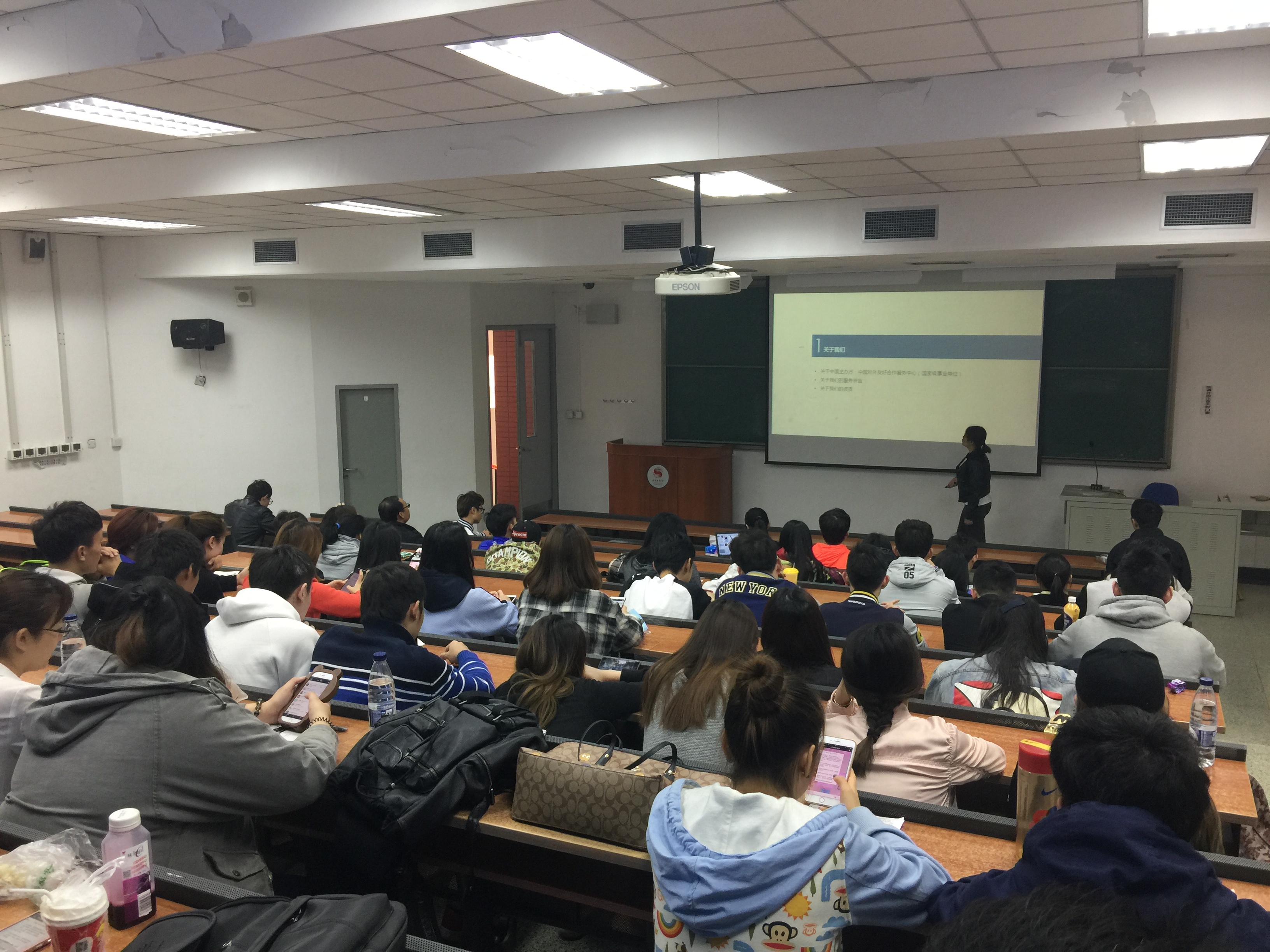 首先,王欣老师大致介绍了本项活动的内容,赴美带薪实习是美国国务院指定的国际文化交流项目,它包含2-3个月的短期实习和1个月的旅游。旨在帮助同学们体验美国生活,了解风土人情,亲自体验西方文化,为以后出国留学打下良好的基础。