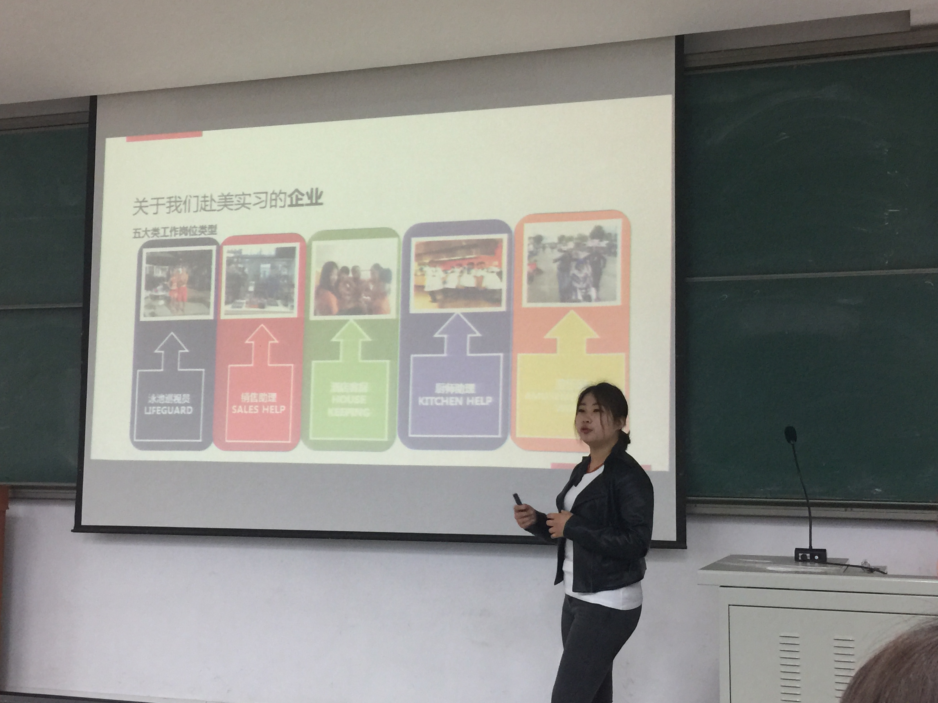 接下来,王欣老师就申请资格、相关费用、办理流程等问题进行了介绍。关于实习状况,本次赴美实习为同学们提供工作的相关企业有大型酒店、度假村、餐饮店、游乐场等,还有部分实习岗位,如超市店员、餐饮服务生、酒店服务生等,这些看似简单的职业会对同学以后的工作提供非常大的帮助,不仅增强老员工的社会综合竞争力,还能使参加的员工提高口语水平,开阔视野,增长见识。