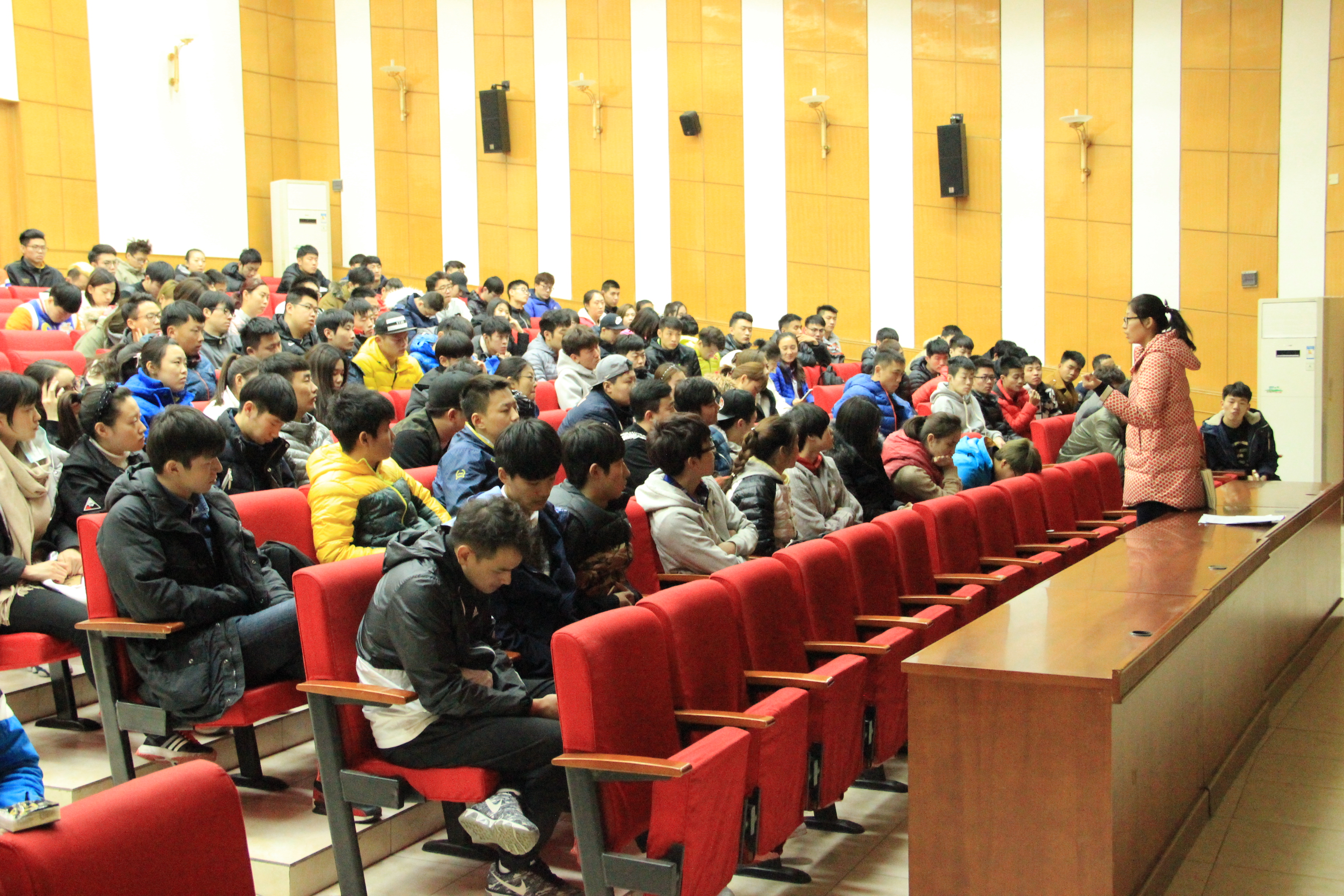 大会上王艺杰老师首先要求缓补考同学尽快在网上报名,不要错过报名时间。然后与同学们就考研问题交流经验。最后,强调了早操和晚归的问题。高静怡老师首先嘱咐:英语四六级考试即将开始报名,同学切勿错过报名时间。随后面对现在就业难的问题,鼓励同学们考研,建议大家行动起来,一起学习。最后提醒同学们,大三课程少,希望同学们规划好自己的计划,规律作息。