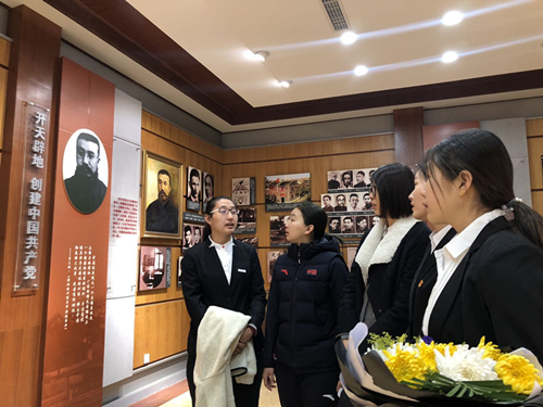 首先参观了李大钊烈士林园纪念馆,了解到李大钊同志作为中国共产党的先驱、中国共产党的主要创始人之一,不仅是我党早期卓越的领导人,而且是一位学识渊博、勇于开拓的著名学者。他积极领导和推动五四爱国运动的发展,投身于中国共产主义运动和民族解放事业当中。走出纪念馆后,支部成员默立于李大钊烈士碑文下致敬李大钊同志对中国共产党创建所做出的至关重要的贡献。