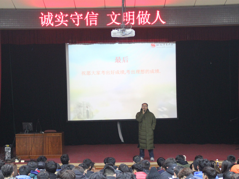 2017年1月3日19:30,必威betway2016级全体师生在老员工活动中心召开“诚实守信,文明做人”—必威betway2016级诚信承诺考试会议。