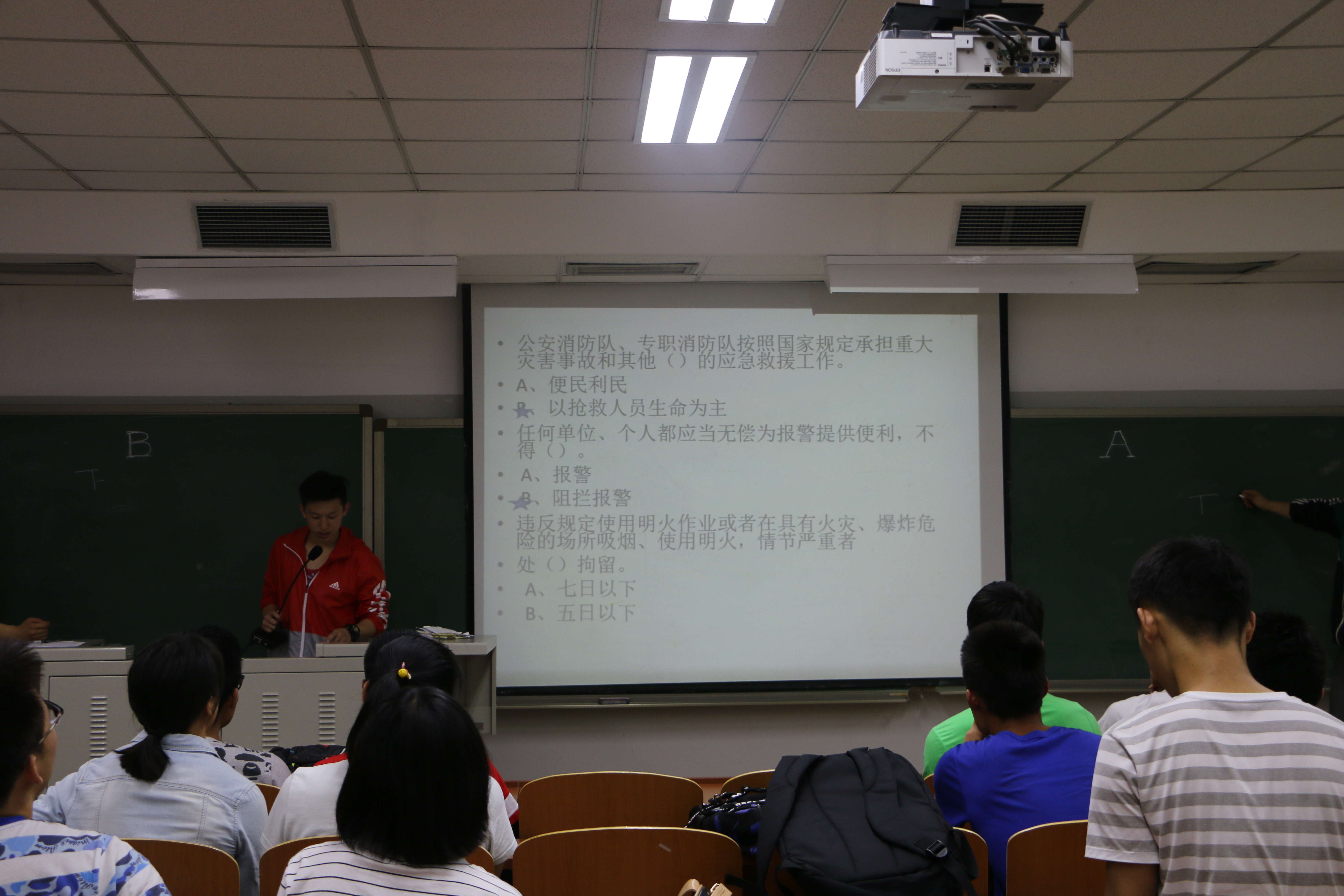 比赛分成A、B两队进行,比赛规则为抢答制,开赛不久双方就进入了白热化阶段,比分胶着 ,5题过后B队率先抓住机会打破平分局面,A队也不甘示弱紧随其后,3题过后双方打成平手,但很可惜A队在最后关键制胜分上惜败于对手,B队以一分的优势取得了本次知识竞赛的胜利。