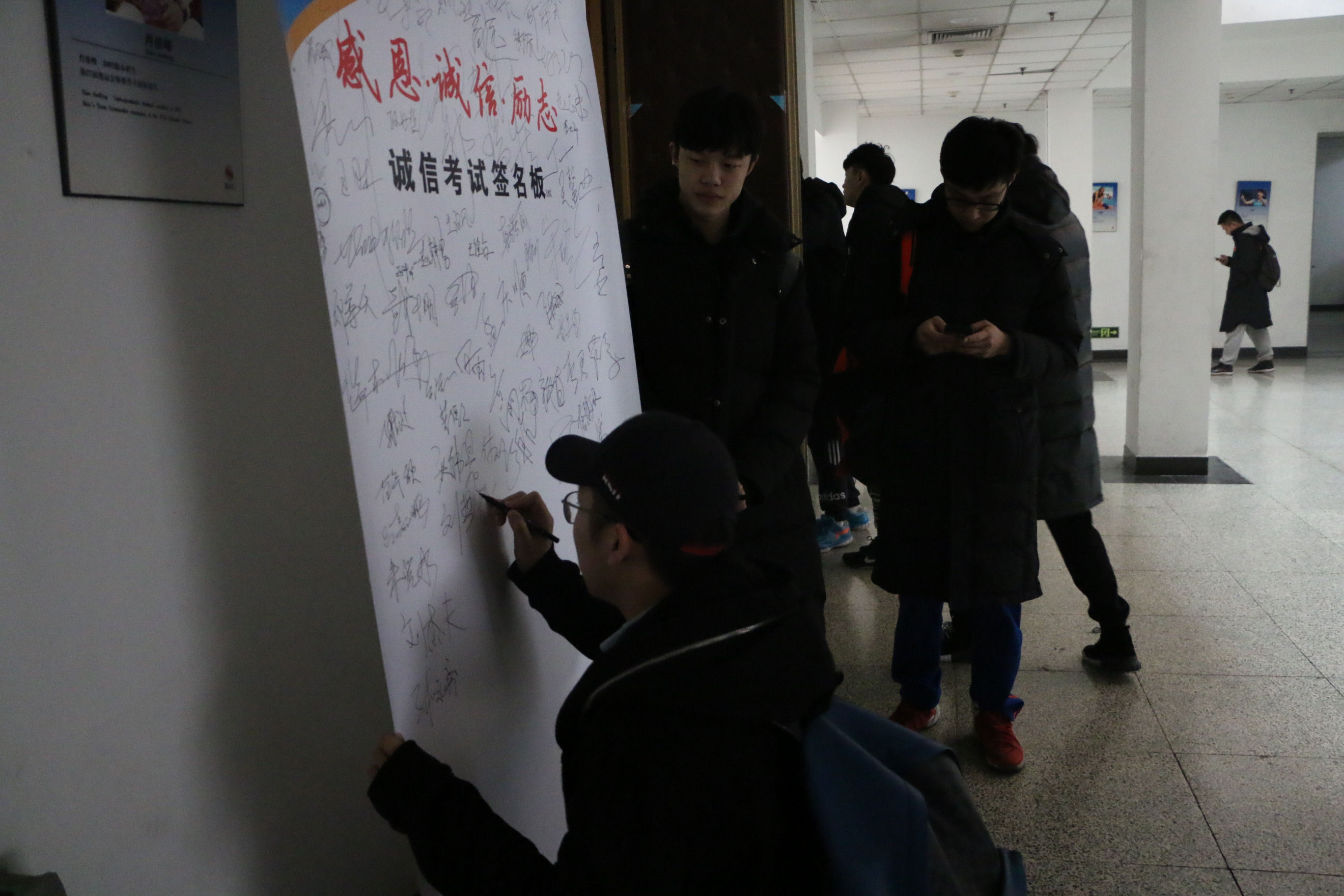 在同学们进场前,在诚信考试签名版上进行了签字仪式,表达了自己诚信考试的决心。活动开始,在主持人介绍完整个活动的的流程后,班级的成果展示环节拉开了帷幕,环环相扣,整个活动流程进行时的十分流畅,主持人幽默的主持风格也为会场氛围增添不少乐趣。各班级的成果展示也都十分精彩,主题鲜明,深入人心,引人深思。在场的员工也十分配合活动的进行,在看到精彩部分时,也毫不吝惜自己的掌声,场面气氛十分热烈。